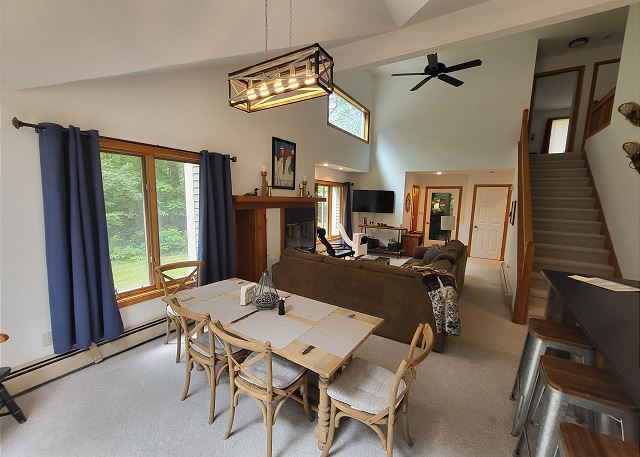 combination tub/shower, king, shower, toilet, twin/ single, autumn foliage, churches, cinemas, festivals, forests, playground, recreation center, restaurants, synagogues, theme parks, water parks, waterfalls, Dining, Games, Satellite / Cable, Television, Toys, Smart TV, Air Conditioning, Clothes Dryer, Hair Dryer, Heating, Internet, Iron & Board, Linens Provided, Living Room, Parking, Towels Provided, Washing Machine, Desk, Wifi, Free Wifi, Wifi Speed 100+ Mbps, Desk Chair, Coffee Maker, Dishes & Utensils, Dishwasher, Ice Maker, Kitchen, Microwave, Oven, Pantry Items, Refrigerator, Stove, Toaster, Dining Table, Dishes & Utensils for Kids, antiquing, bird watching, eco tourism, outlet shopping, photography, scenic drives, sight seeing, sledding, walking, ATM/bank, fitness center, groceries, laundromat, medical services, Mountain, Deck / Patio, Lawn / Garden, Outdoor Grill, Outdoor Play Area, Communal Pool, Heated Pool, Hot Tub, Indoor Pool, basketball court, fly fishing, freshwater fishing, hiking, mountain biking, mountain climbing, roller blading, skiing, tennis, children welcome, pets considered, Minimum Age Limit for Renters, flexible, necessary, recommended, Guests provide their own meals, Dining Room, Adventure, Away From It All, Family, Romantic, Sports & Activities, Tourist Attractions, Outdoor lighting, Smoke detectors, Carbon monoxide detector, Fire extinguisher, Emergency phone number: Medical, Emergency phone number: Police, Emergency phone number: Fire, No-contact check-in and check-out